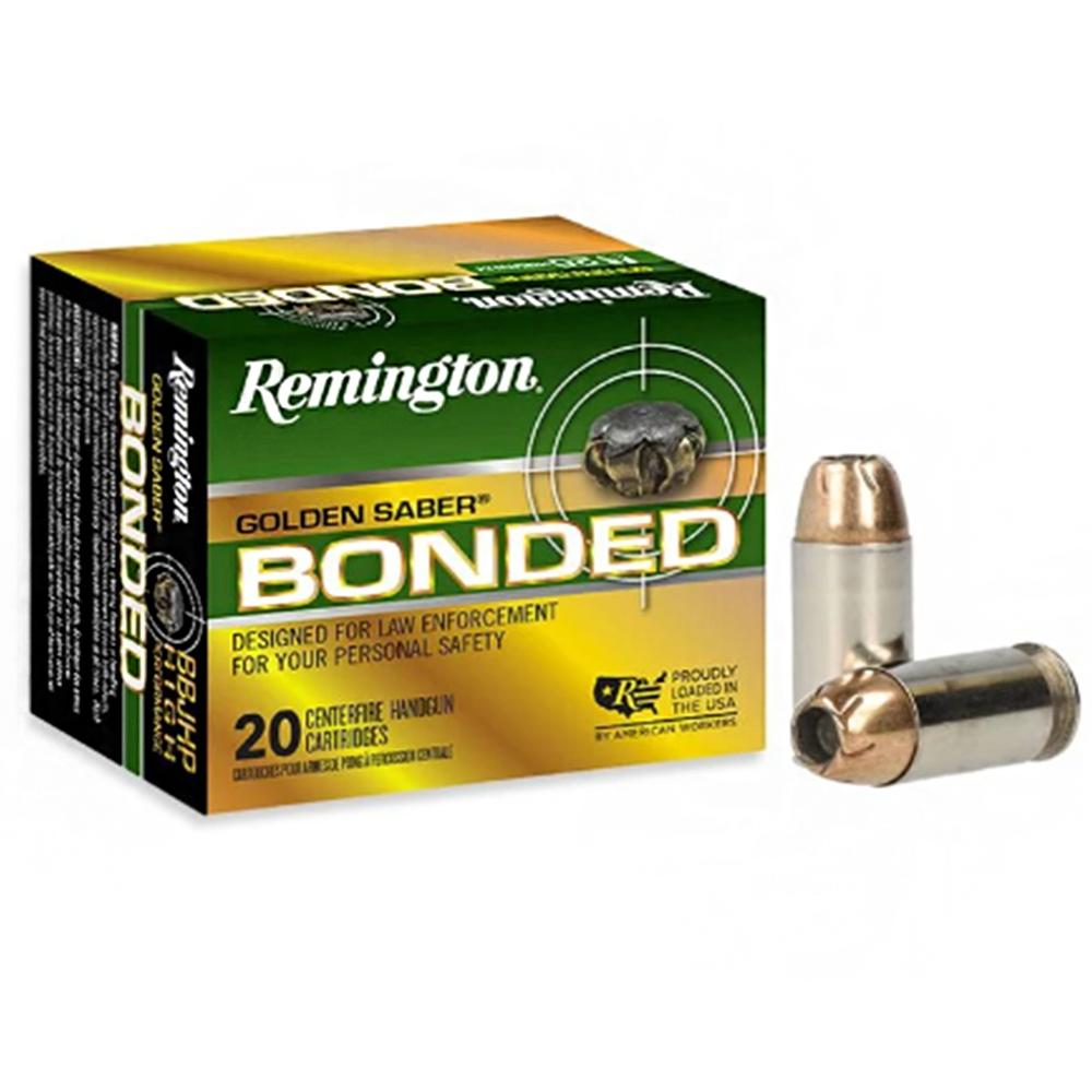 Formerly a law enforcement only product, Golden Saber Bonded is now available to the public. The ultimate in defensive and tactical handgun ammunition, these rounds utilize exclusive technology to produce match-grade accuracy and optimal terminal performance. Improving on trusted Golden Saber, Golden Saber Bonded's reduced bullet nose diameter, optimized jacket thickness, and Remington bonded-bullet manufacturing process produces unmatched expansion, weight-retention and barrier-blind performance to keep you safe. Loaded in the USA, Golden Saber Bonded is available in 357 Sig, 9mm Luger, 40 S&W, 45 Auto, and 10mm.