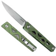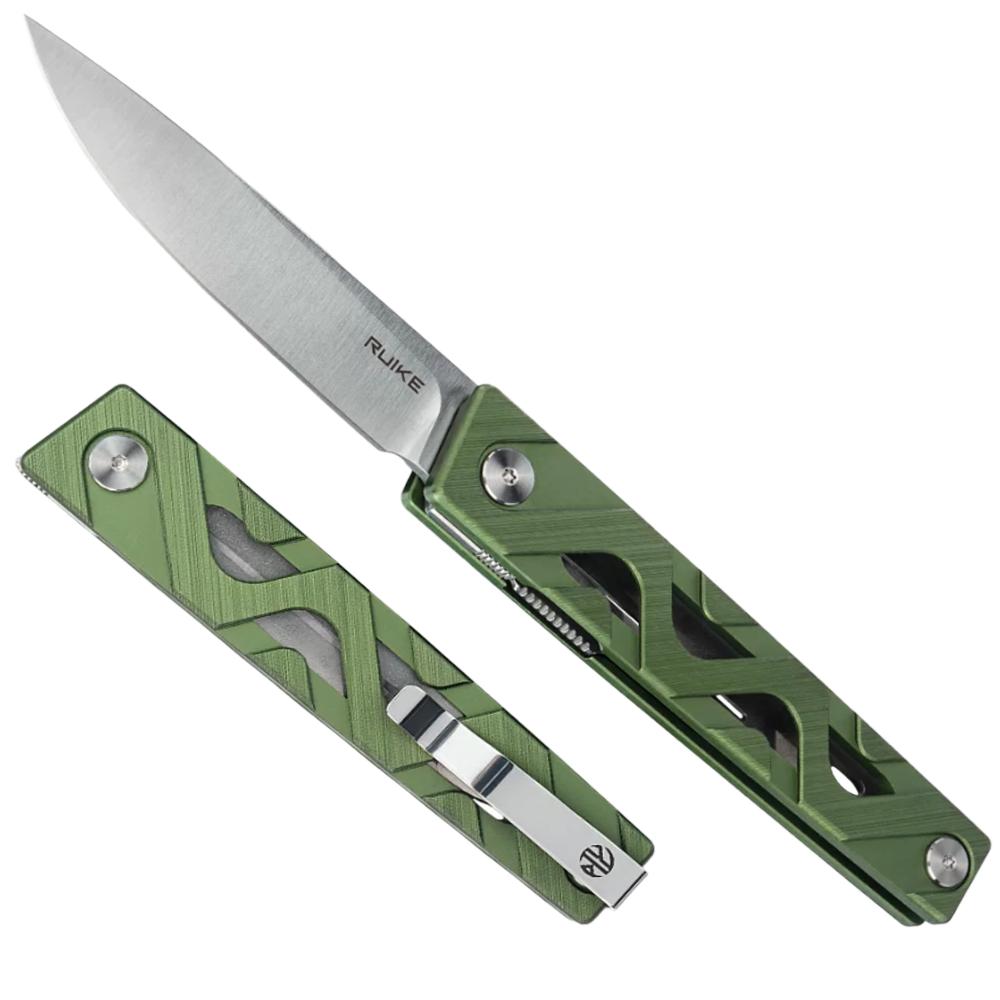 Ruike Knives P878-AG Flipper Knife 3.4" 14C28N Satin Drop Point Blade, Green Aluminum Alloy Handles, Liner Lock