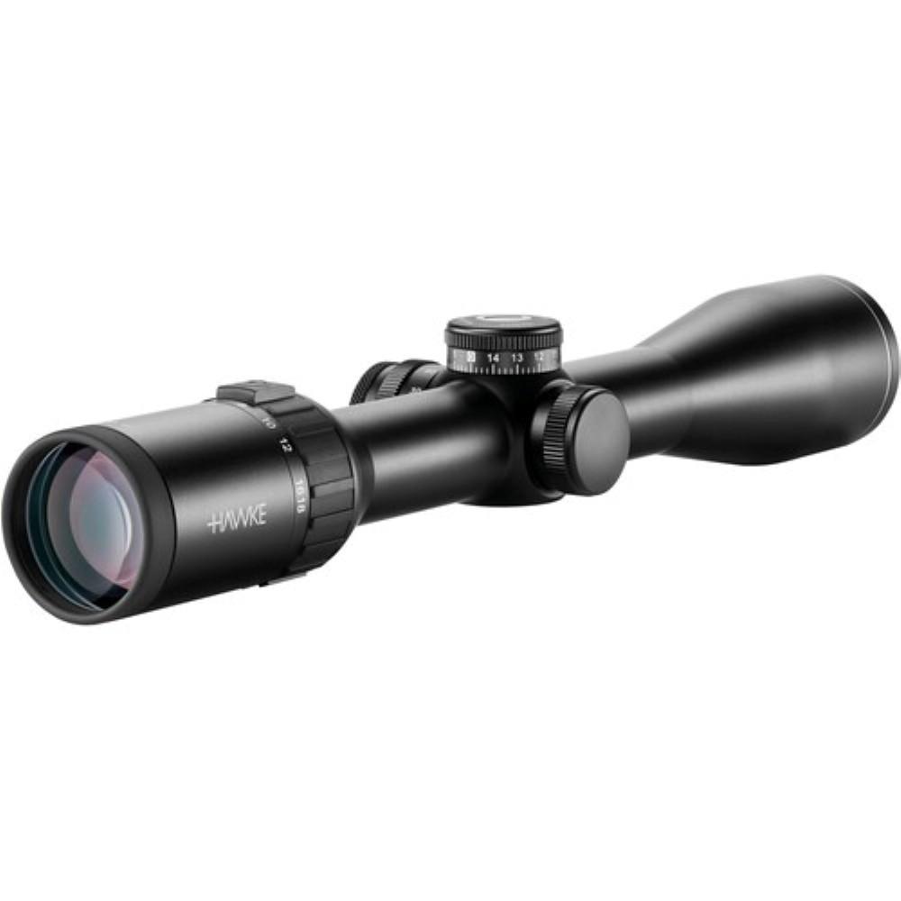 Powerful magnification and a clean but sophisticated reticle make the Hawke Optics 3-18x44 Endurance 30 FD Riflescope a wise choice for a range of hunting and shooting uses. Its 44mm objective admits plenty of light even for dawn and dusk hunting, with 18-layer full lens multicoating ensuring maximum light transmission with little glare or color fringing. The holdover aim points of the LRX-Hunter reticle correspond to the ballistic spacing of popular centerfire cartridges, along with wind holds 2 MOA apart. The anodized aluminum 30mm one-piece maintube is nitrogen-filled and O-ring sealed to be fog and waterproof.
