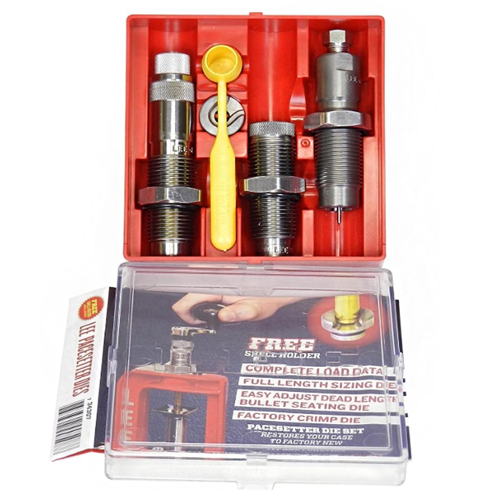 Lee 25/06 Pacesetter 3-Die Set includes Full Length Sizing Die, Bullet Seating Die, Factory Crimp Die, Universal Shell Holder, Powder Dipper and Instructions/Load Data