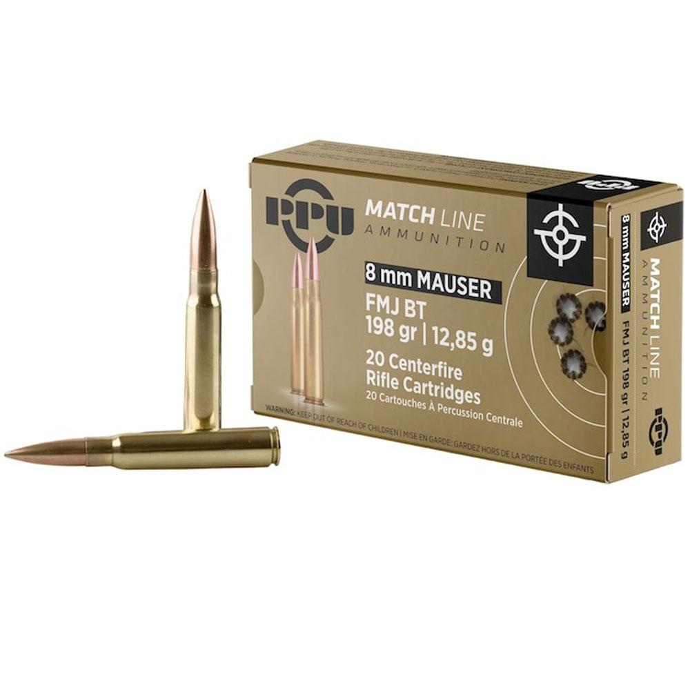 PPU Match 8x57mm JS Mauser (8mm Mauser) (323 Diameter) Ammo 200 Grain Full Metal Jacket - Box of 20