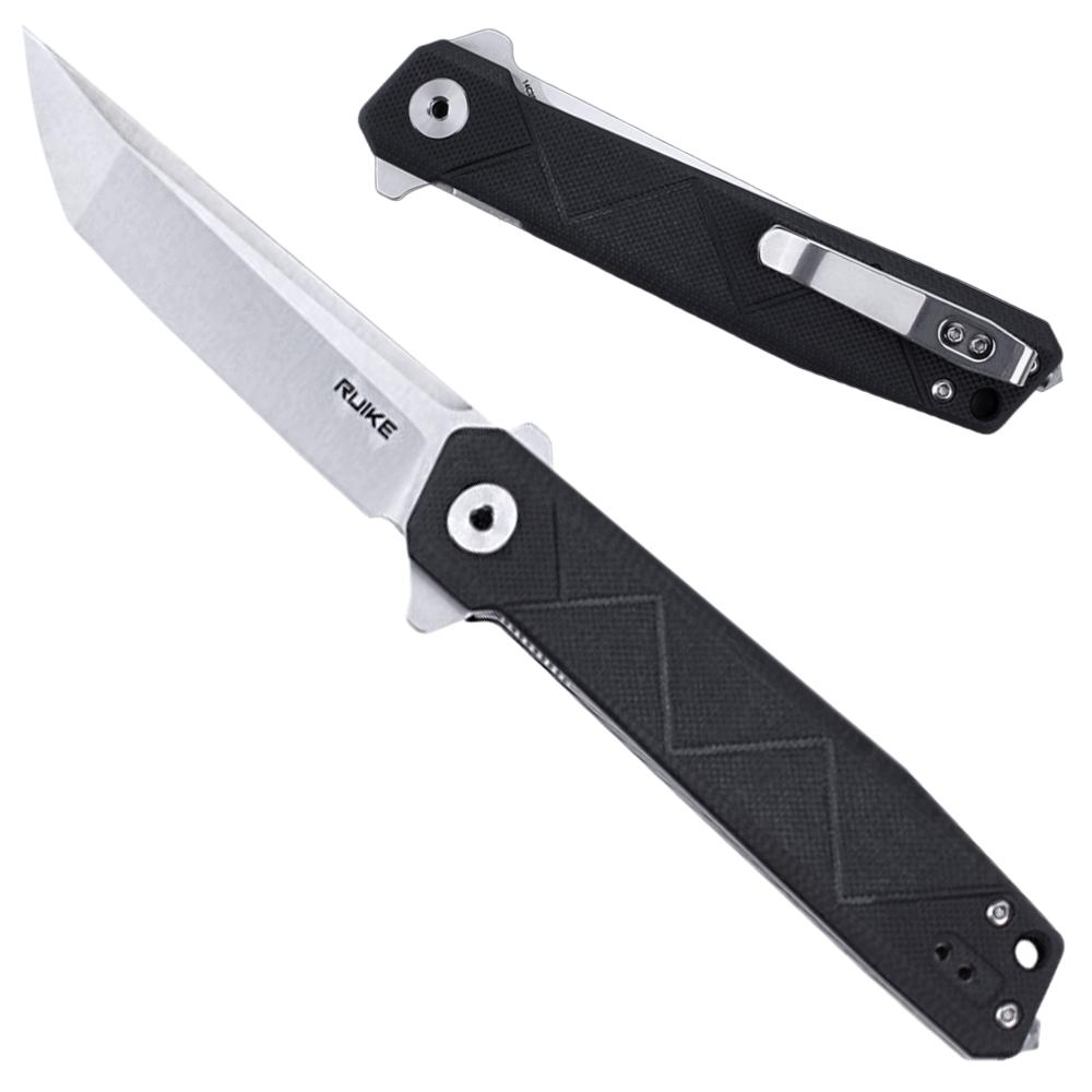 Ruike Knives P127 Flipper Knife 3.58" 14C28N Satin Tanto Blade, Black G10 Handles, Liner Lock - P127-B