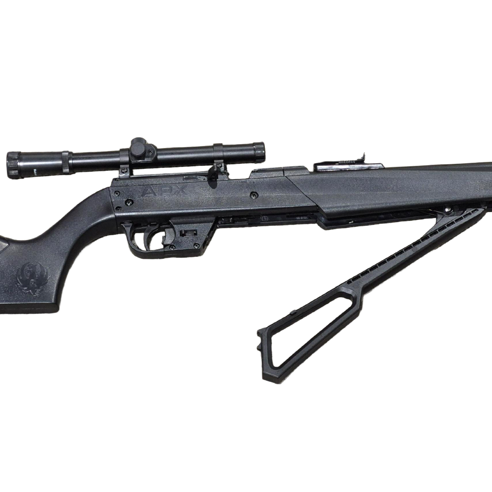 Ruger NXG APX Pump Air Rifle 490 FPS .177 BB and Pellet. The Next Generation APX is the genesis of modern youth air rifles. It redefines the standard of air guns designed for younger and small-framed shooters with a multitude of modern-day features that includes an automatic safety-a feature never before seen on a pneumatic rifle of this type. The dual ammunition APX features a progressive stock design that's ergonomic, modern, and impact resistant. Its multi-pump action and easy-load pellet ramp are easy to use for right or left-handed shooters and it deploys projectiles up to a velocity of 490 feet per second at maximum air charge.