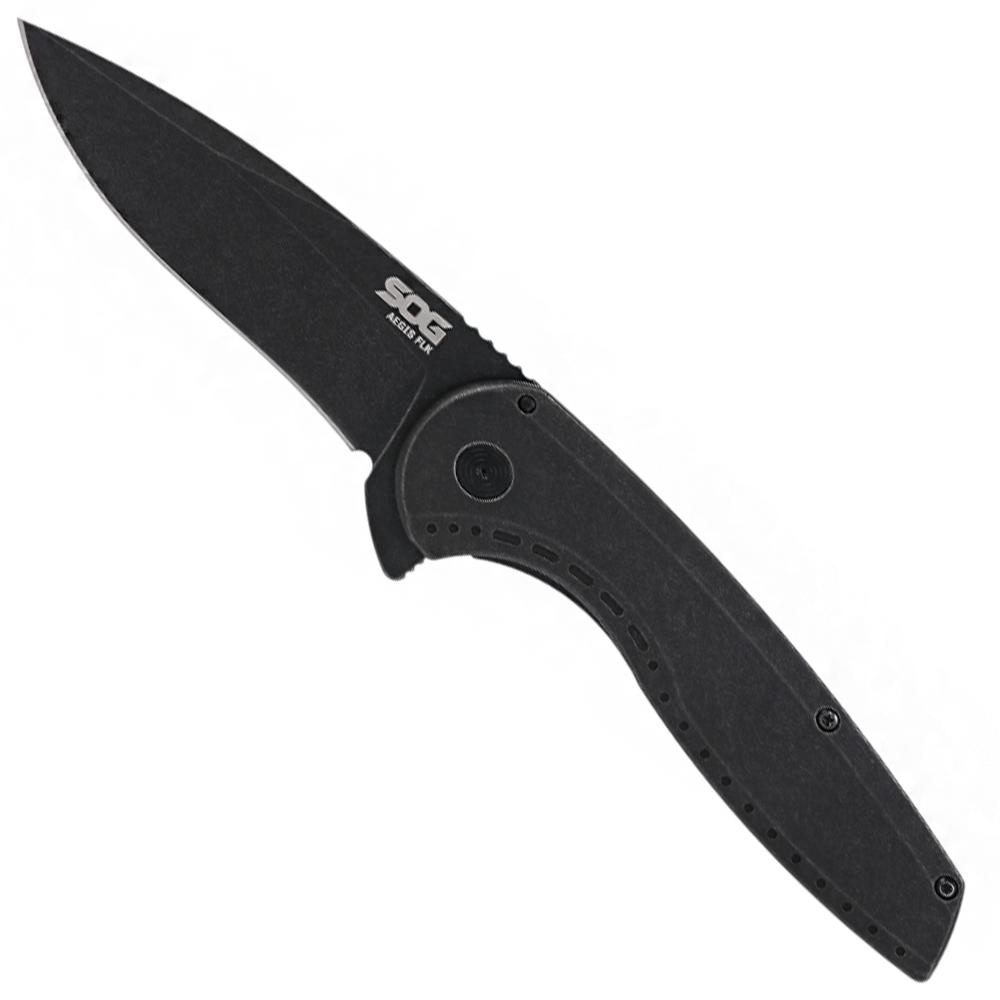 SOG - Aegis FLK - Black Stonewash - Drop Point - Stainless Steel
